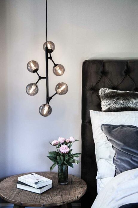 Den smukke smoked farvede glaspendel skaber et dekorativt og blødt lys, der tilfører elegance og varme til enhver indretning.