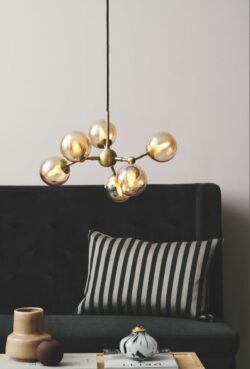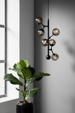 Med den lange ledning på 250 cm kan højden tilpasses, så lampen hænger perfekt over spisebordet, køkkenøen eller i stuen.