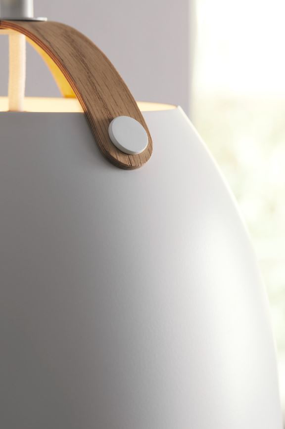 OSLO pendellen i hvid er fremstillet i egetræ og lakeret metal, hvilket skaber et minimalistisk og tidløst skandinavisk udtryk.