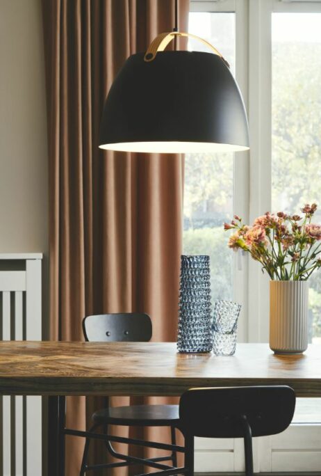 OSLO pendellen i sort er fremstillet i egetræ og lakeret metal, hvilket skaber et minimalistisk og tidløst skandinavisk udtryk.