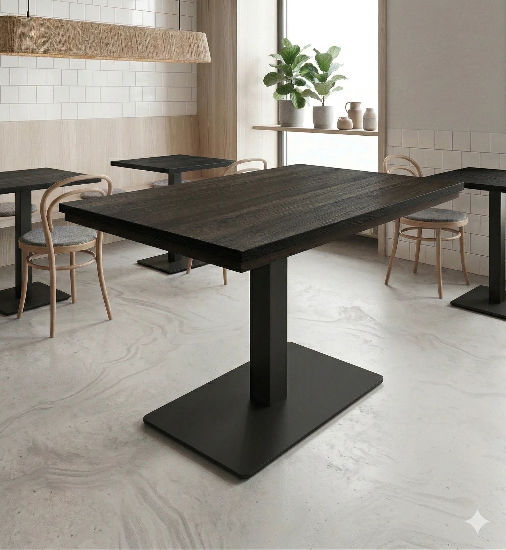 Opgrader din restaurant, café eller kantine med dette klassiske cafébord, der kombinerer tysk kvalitet med et råt, industrielt look. Bordet er skabt til professionel brug, hvor både æstetik og slidstyrke er i højsædet.