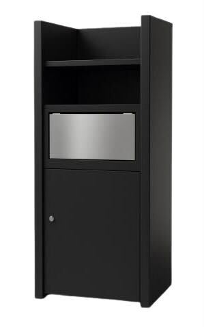 Affaldsstation er produceret i sort melamin, der forener funktion og design i en elegant helhed.