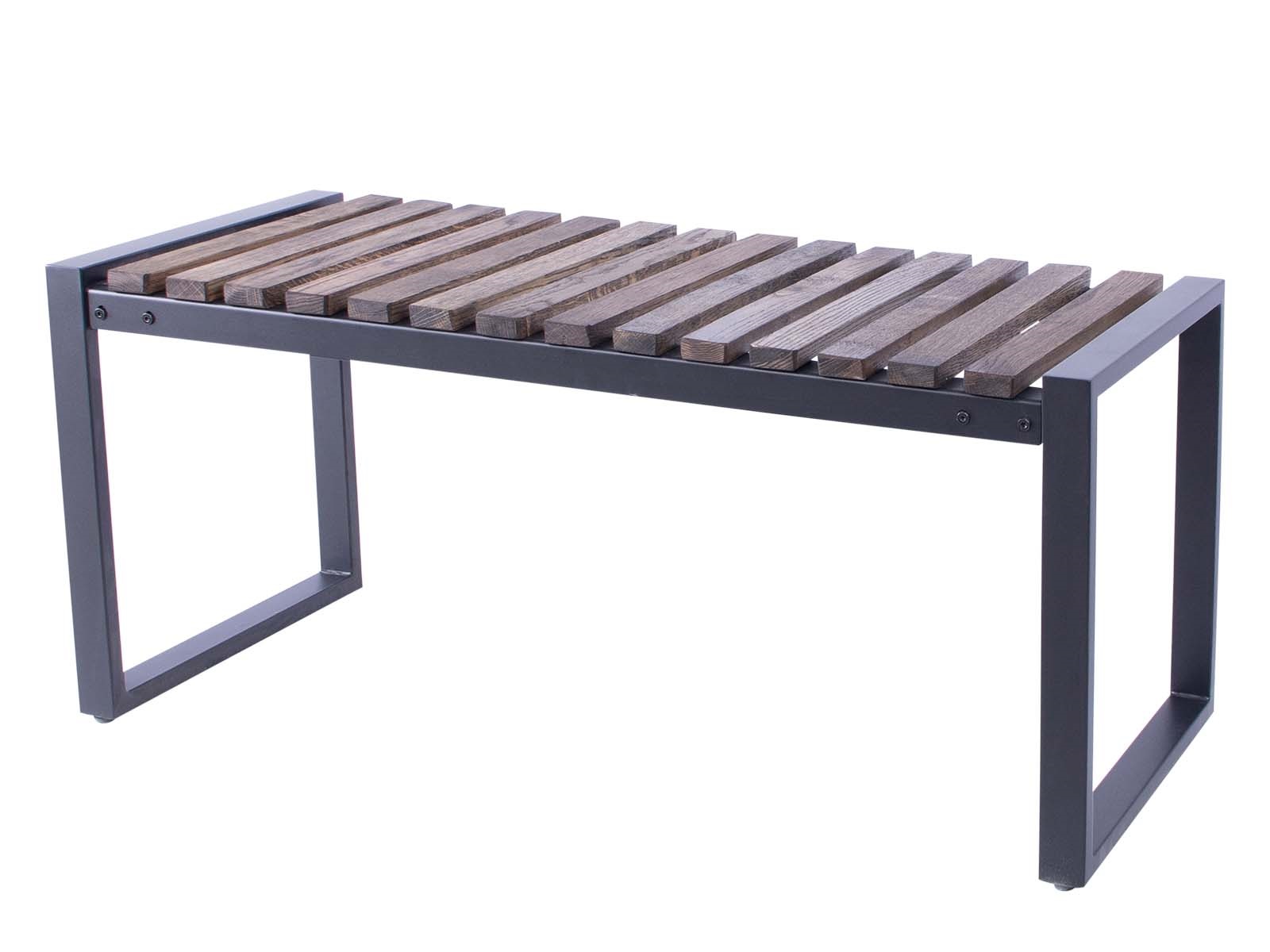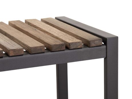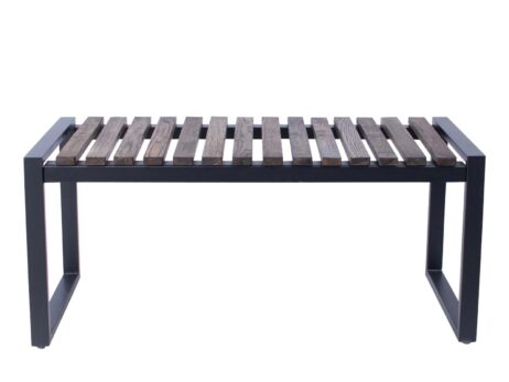 Bænken er designet med en solid ramme i sortlakeret metal og smukke egetræslameller, der giver et nordisk og naturligt look.