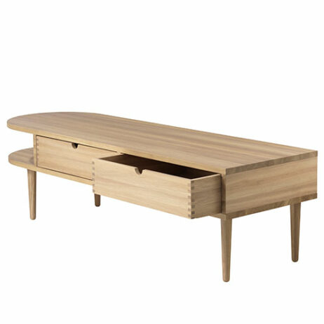 Denne flotte og funktionelle bænk kan bruges til rigtig mange forskellige møbler. Brug den som bænk, som tv-bord, som opbevaring, som sofabord, ja kun din fantasi sætter grænser. Med en finish af bedste kvalitet kan du trygt investere i denne bænk. Bænken har to indbyggede skuffer der kan åbnes fra begge sidder, det vil sige at den kan vende præcis som der er brug for. Et minimalistisk møbel til et hav af muligheder der kan dække mange behov. Møblet er designet i FDBs ånd om simpelt design med høj funktionalitet og der må det siges at Mot & Bergstrøm ramte plet. Bænken er lavet i massivt egetræ så du får den bedste kvalitet.