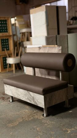 Modulsofaen kan skræddersys efter dine ønsker – vælg selv farve, materiale og størrelse, så du får en løsning, der matcher netop dit lokale og din indretning.