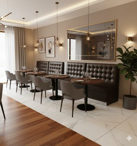 Det polstrede sæde og de flotte detaljer i ryggen, skaber den helt perfekte stemning og atmosfære til din restaurant, cafe eller bar.