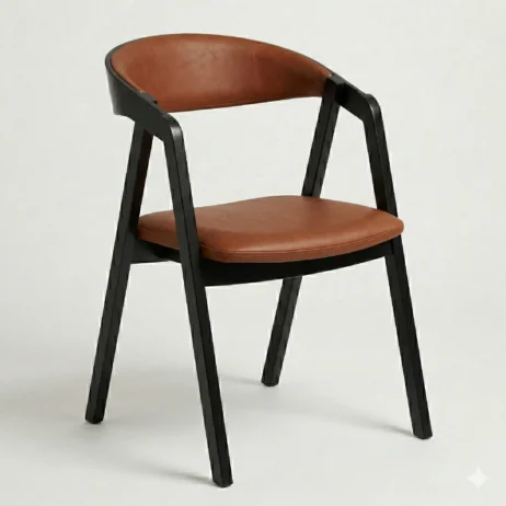 Laura stol i sort bøg med cognac PU sæde