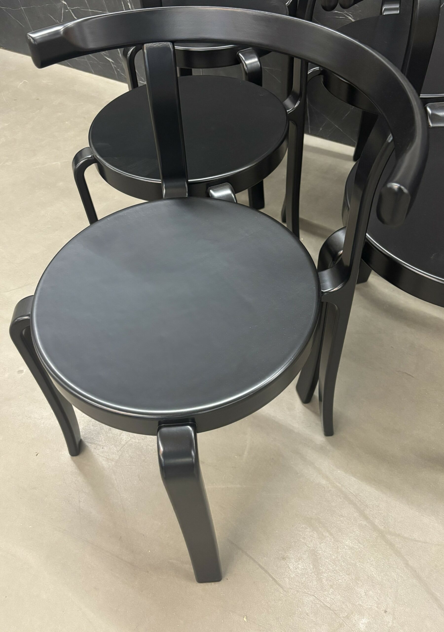 8000-serien blev skabt i 1981 af Magnus Olesen selv og er kendt for sin avancerede, håndværksmæssige konstruktion helt uden skruer og dyvler. Resultatet er en stol med smukke, glidende linjer og en harmonisk, sømløs sammenhæng, der har gjort den til en favorit i både private hjem og professionelle miljøer.