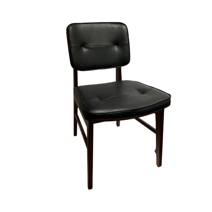 Flot bøgestol i antique valnøds look med PU læder. Rent design. Kanon kvalitet fra en af Portugals største leverandører på stole