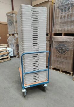 Det smarte design med stabelspor reducerer opbevaringspladsen med op til 20 %, og op til 40 borde kan opbevares på bare 0,6 m².