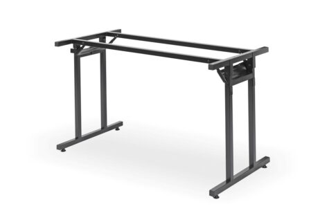 Smart sammenklappeligt understel. T-understellet kan slås sammen og kan derfor bruges i en permanent opstilling eller hvis bordene skal pakkes væk. Understellet er i metal med sort pulver lakering. Bordpladen der sættes på understellet skal være minimum 60×125 cm og må have en max størrelse på 180×80 cm, bordpladen medfølger ikke. Understellet er 74 cm højt når det er udslået og måler 118 cm langt og 50 cm bredt.