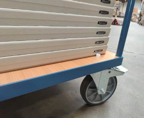 Spar plads og tid ved at kunne opbevare op til 40 klapborde på én vogn – ideelt til lokaler med varierende behov for bordopstillinger.