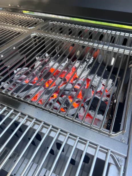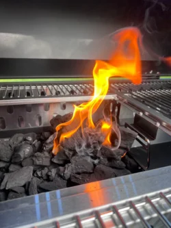 Rotisserie spyd med motor, overdækken og forhøjer rist kan tilkøbes som ekstraudstyr.