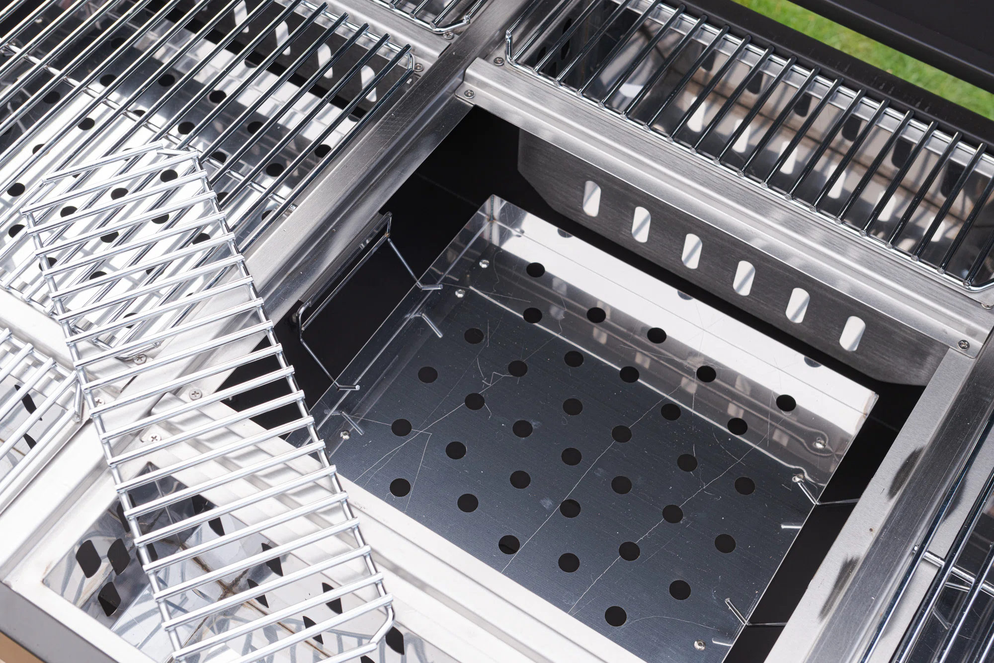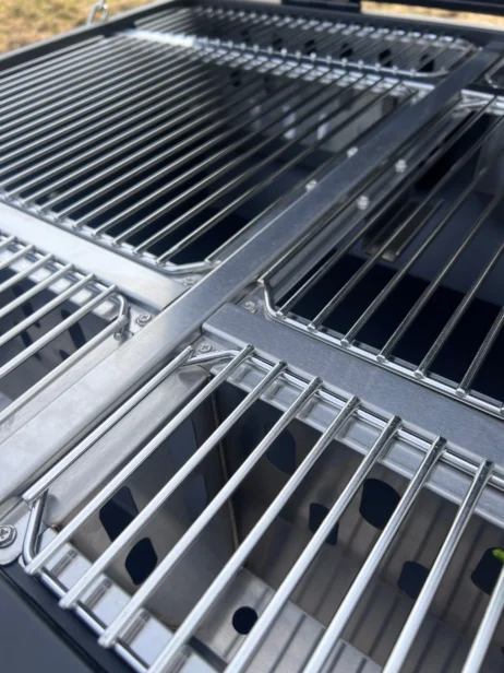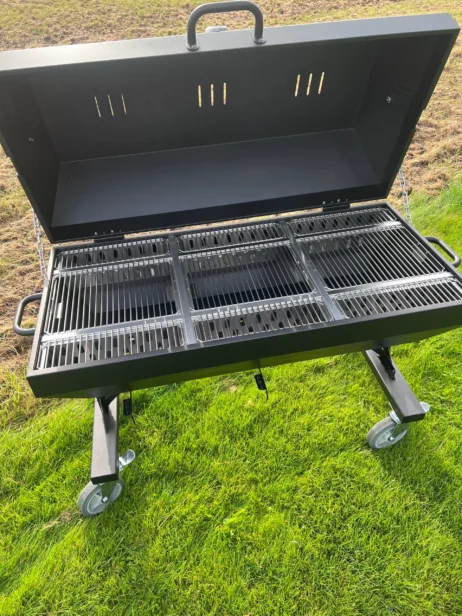 Cater Grill 1500 er vores bedste bud til dig der laver helstegt pattegris og samtidigt også ønsker en grill der kan bruges til andet. Grillen er fremstillet så der kan grilles direkte på hele fladen 140x70cm. eller indirekte i siderne. Den er inddelt med riste og kulbakker så alle løse dele kan gå i opvaskemaskinen efter brug.