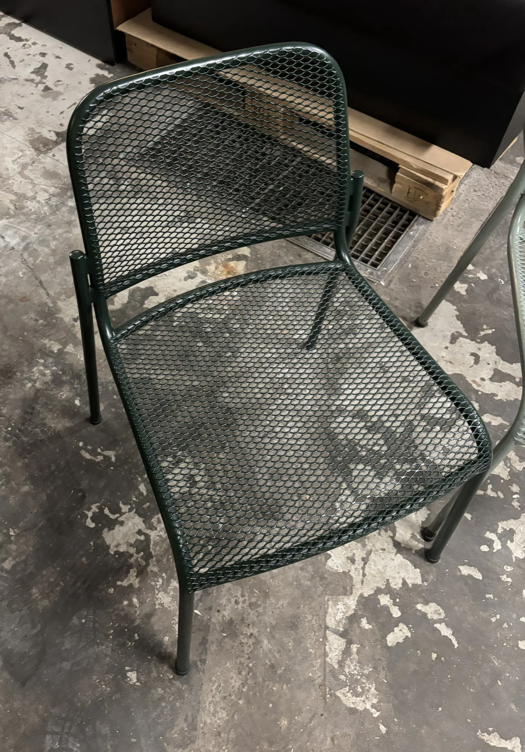 Stål stabel stole i mørke grøn.